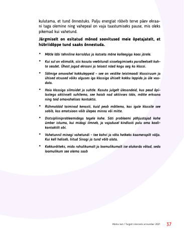 Järgmiselt on esitatud mõned soovitused meie õpetajatelt, et hübriidõppe tund saaks õnnestuda.