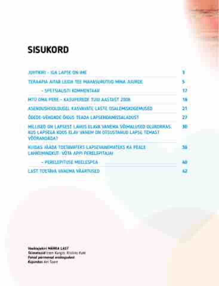 - PERELEPITUSE MEELESPEA 40 LAST TOETAVA VANEMA VÄÄRTUSED 42