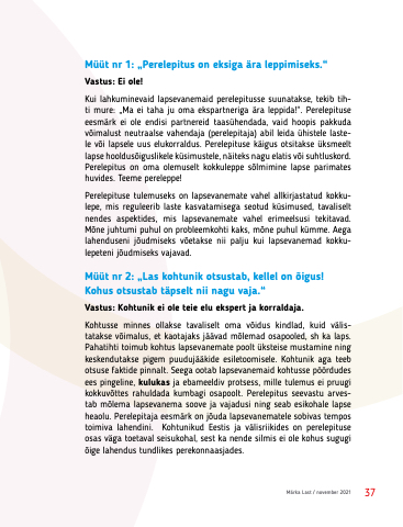 Müüt nr 1: „Perelepitus on eksiga ära leppimiseks.“