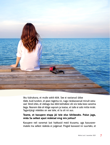 tõele, kuid tundsin, et pean tegema nii, nagu täiskasvanud minult oota- vad. Vend ütles, et võetagu kas kõik kolmekesi või siis teda koos vanema õega. Noorem õde oli kõige vapram ja teatas, et talle ei sobi mitte miski. Tagantjärgi mõeldes on see lahe, et ta oli nii aus.