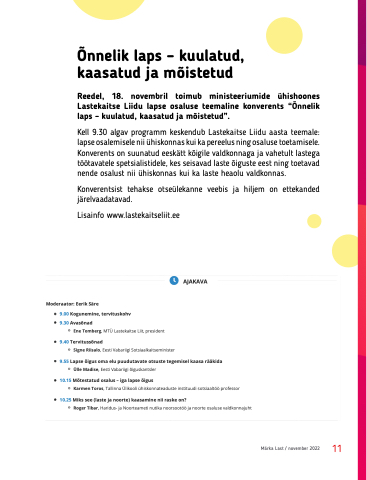 Lastekaitse Liidu lapse osaluse teemaline konverents “Õnnelik