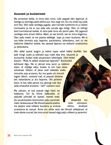 ees vabandama ja ära leppima. Üks poistest küsis, et kas selle pärast ma jätsingi nad üksi seda omavahel arutama. “Jah!” vastasin vaid.