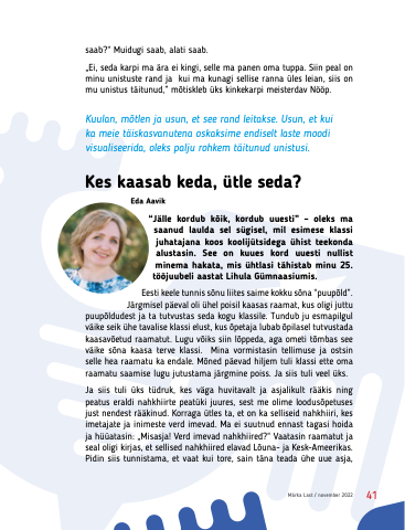 Kes kaasab keda, ütle seda? Eda Aavik