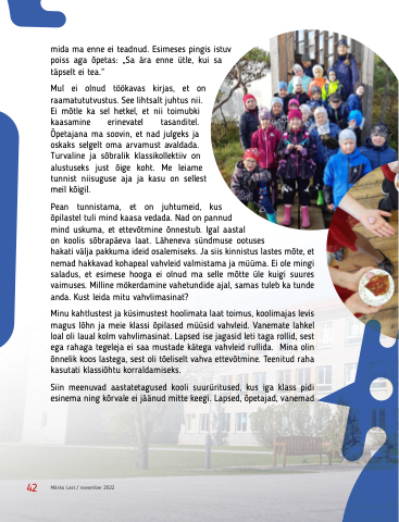 Mul ei olnud töökavas kirjas, et on raamatututvustus. See lihtsalt juhtus nii. Ei mõtle ka sel hetkel, et nii toimubki kaasamine erinevatel tasanditel. Õpetajana ma soovin, et nad julgeks ja oskaks selgelt oma arvamust avaldada. Turvaline ja sõbralik klassikollektiiv on alustuseks just õige koht. Me leiame tunnist niisuguse aja ja kasu on sellest meil kõigil.