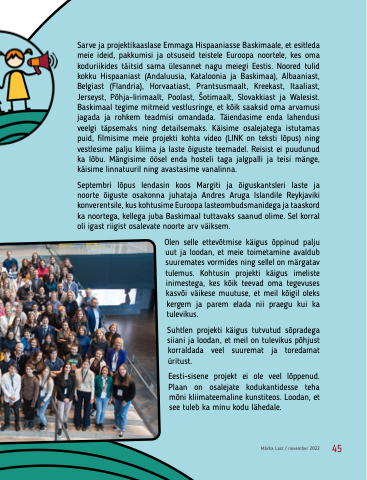 Olen selle ettevõtmise käigus õppinud palju uut ja loodan, et meie toimetamine avaldub suuremates vormides ning sellel on märgatav tulemus. Kohtusin projekti käigus imeliste inimestega, kes kõik teevad oma tegevuses kasvõi väikese muutuse, et meil kõigil oleks