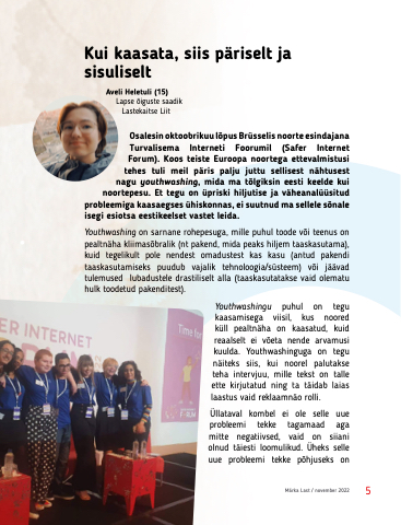 Turvalisema Interneti Foorumil (Safer Internet Forum). Koos teiste Euroopa noortega ettevalmistusi tehes tuli meil päris palju juttu sellisest nähtusest nagu youthwashing, mida ma tõlgiksin eesti keelde kui noortepesu. Et tegu on üpriski hiljutise ja väheanalüüsitud probleemiga kaasaegses ühiskonnas, ei suutnud ma sellele sõnale