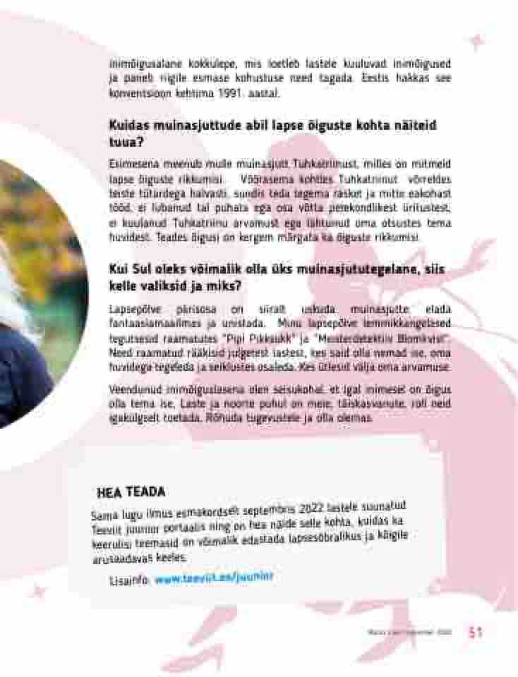 Sama lugu ilmus esmakordselt septembris 2022 lastele suunatud Teeviit juunior portaalis ning on hea näide selle kohta, kuidas ka keerulisi teemasid on võimalik edastada lapsesõbralikus ja kõigile arusaadavas keeles.