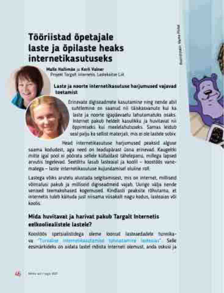 Erinevate digiseadmete kasutamine ning nende abil suhtlemine on saanud nii täiskasvanute kui ka laste ja noorte igapäevaelu lahutamatuks osaks. Internet pakub heldelt kasulikku ja huvitavat nii õppimiseks kui meelelahutuseks. Samas leidub seal palju ka sellist materjali, mis ei ole lastele sobiv.