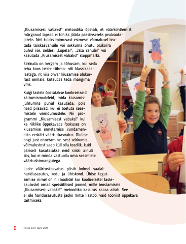 „Kiusamisest vabaks!“ metoodika õpetab, et väärkohtlemist märganud lapsed ei tohiks jääda passiivseteks pealvaata- jateks. Neil tuleks toimuvast esimesel võimalusel tea-