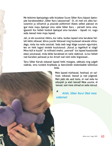 Tänu Sõber Karule oskavad lapsed hetki märgata, sekkuda ning julgelt rääkida, oma tundeid kirjeldada ja keerulistele olukordadele lahendusi