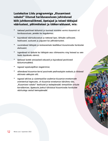 * suurendavad töötajate ja lastevanemate teadlikkust kiusamisvaba haridustee olulisusest;