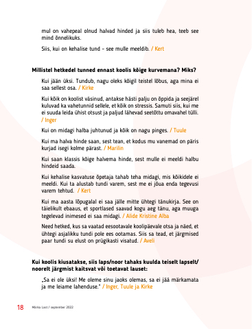 Millistel hetkedel tunned ennast koolis kõige kurvemana? Miks?