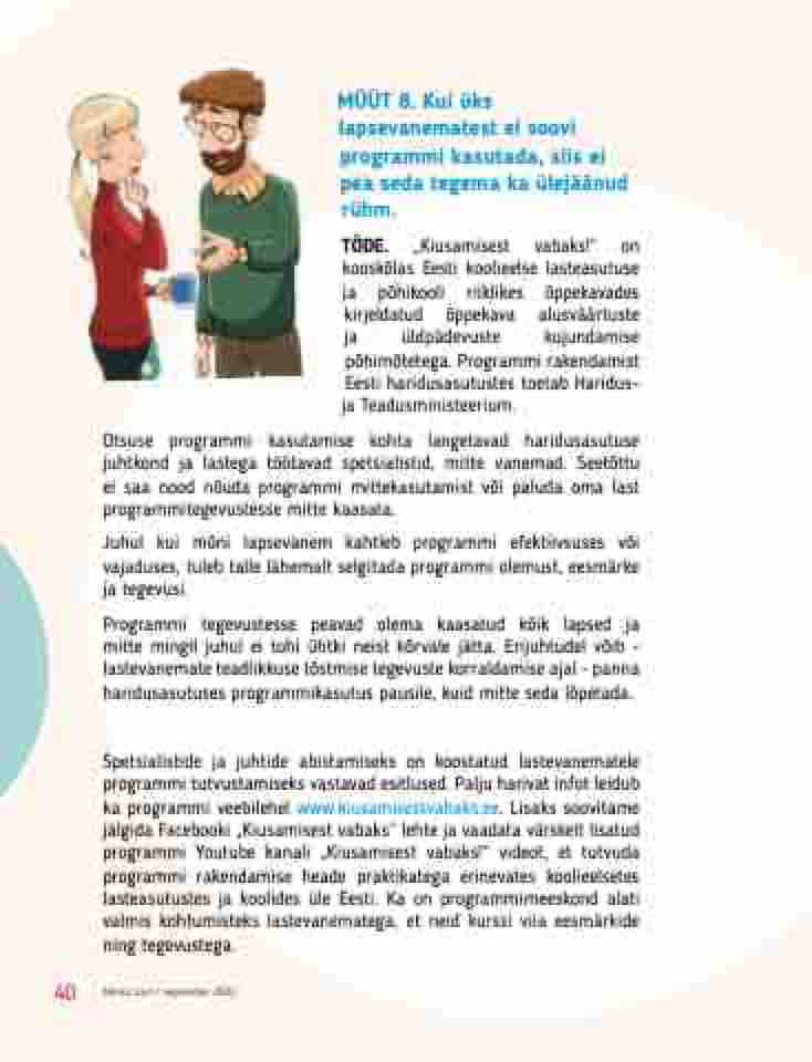 MÜÜT 8. Kui üks lapsevanematest ei soovi programmi kasutada, siis ei pea seda tegema ka ülejäänud