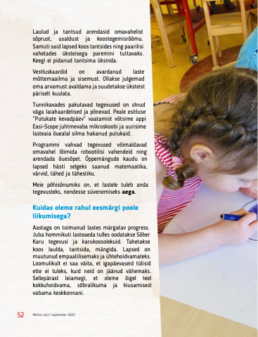Meie põhisõnumiks on, et lastele tuleb anda tegevusteks, nendesse süvenemiseks aega.