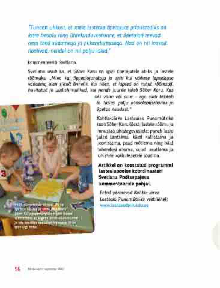 Artikkel on koostatud programmi lasteaiapoolse koordinaatori Svetlana Podtsepajeva kommentaaride põhjal.