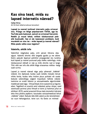 Lapsed ja noored tarbivad internetis palju erinevat sisu. Praegu on kõige populaarsem TikTok, aga ka YouTube pole kadunud, samuti on erinevad foorumid, Reddit ja muud lehed, millest täiskasvanud pole ehk kuulnudki. See ei ole iseenesest probleem, kuid murekoht on sisu ise – mida lapsed ja noored näevad? Mida peaks selles osas tegema?