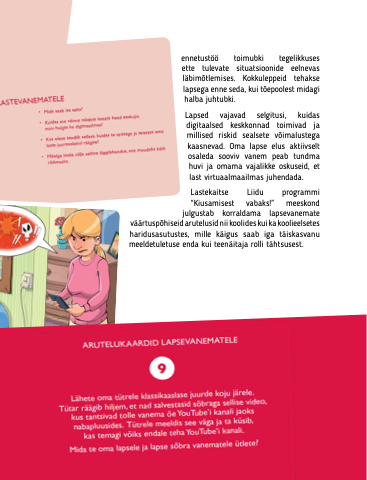 Lapsed vajavad selgitusi, kuidas digitaalsed keskkonnad toimivad ja millised riskid sealsete võimalustega kaasnevad. Oma lapse elus aktiivselt osaleda sooviv vanem peab tundma huvi ja omama vajalikke oskuseid, et